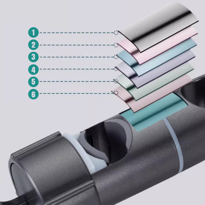 ORIENTATION FLEXIBLE – Pivotant à 360° pour un positionnement parfait de la douchette. Le support est également facile à retirer, ce qui est idéal pour le nettoyage ou le rangement. Grâce à sa taille compacte (dimensions : 12 × 4,3 × 3,6 cm), il s'intègre parfaitement dans toutes les salles de bains.