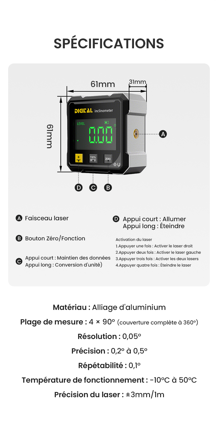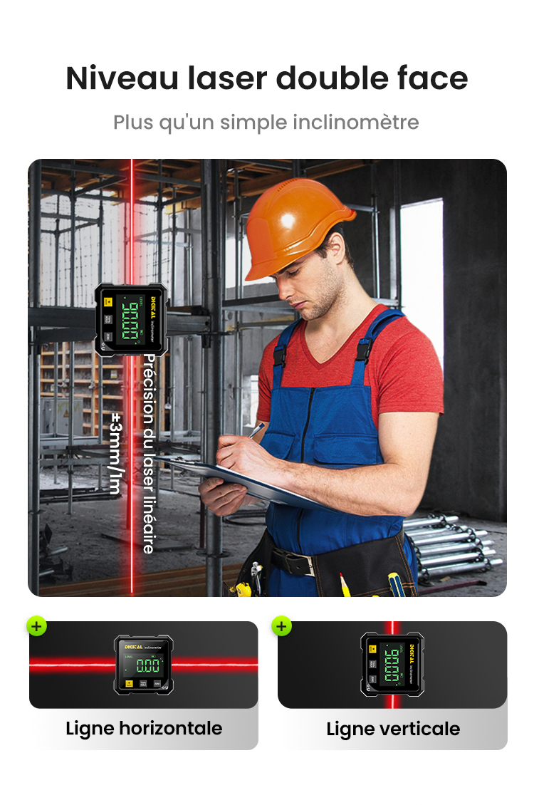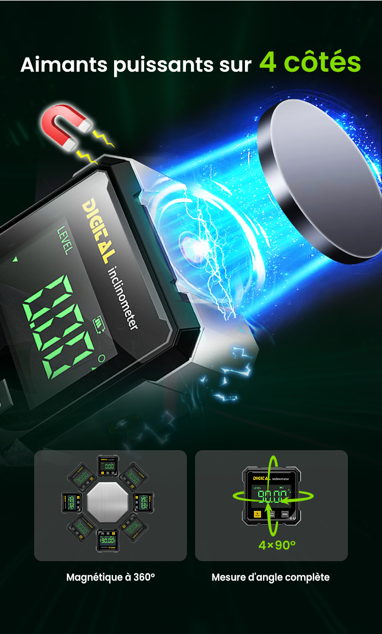 🔥50 % de réduction ! Inclinomètre numérique magnétique à 4 côtés avec laser – Précision ±0,2°, double mode & fixation 360° pour pros 📐⚡